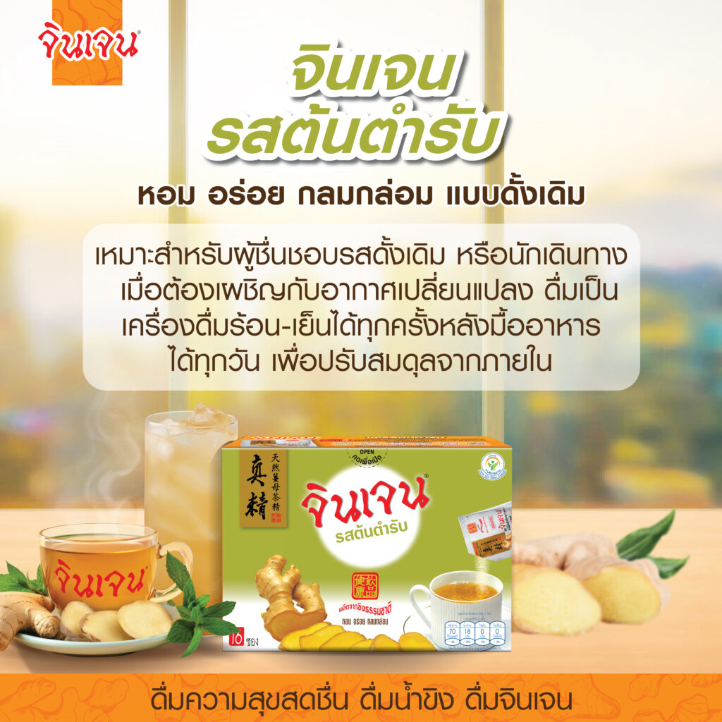 ตำนานความหอมอร่อยทีสร้างชื่อให้กับจินเจนมาอย่างยาวนานกว่า 45 ปี  ขิงต้นตำรับ เปี่ยมไปด้วยคุณค่าของขิงแก่สดคุณภาพเยี่ยมที่ผ่านการคัดสรรอย่างพิถีพิถันในทุกๆ ขั้นตอน ตามแบบฉบับเฉพาะของจินเจน ทำให้รักษากลิ่นและรสชาติแบบดั้งเดิม หอม อร่อย กลมกล่อม อย่างลงตัว ยากที่ใครจะเลียนแบบได้ เหมาะสำหรับผู้ชื่นชอบรสต้นตำหรับ พร้อมความหวานที่พอเหมาะ ดื่มง่าย ดื่มอร่อย ได้ทุกวัน