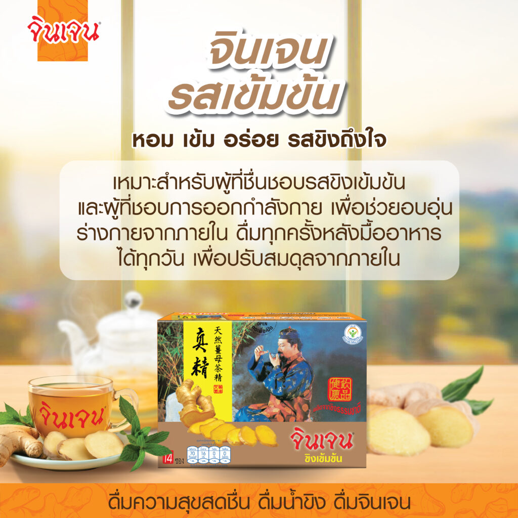 รสชาติเข้มข้น เปี่ยมด้วยคุณค่าของขิงแก่สดคุณภาพเยี่ยมที่คัดสรรอย่างพิถีพิถัน และปรุงด้วยกระบวนการแบบพิเศษตามแบบฉบับเฉพาะของจินเจน เพื่อให้คุณได้ดื่มด่ำกับความเผ็ดร้อนที่เพิ่มขึ้นอีกระดับ แต่ยังคงไว้ซึ่งรสชาติที่ กลมกล่อม หอม อร่อย เต็มเปี่ยมด้วยรสขิงที่เป็นเอกลักษณ์ ไม่เหมือนใคร