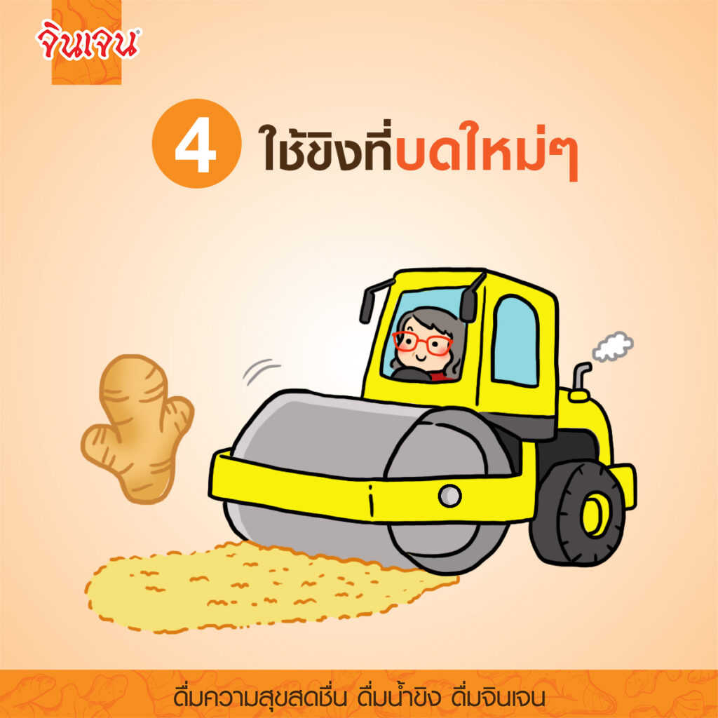 4. ใช้ขิงที่บดเสร็จใหม่ๆ เพราะมีรสชาติดีกว่าและให้กลิ่นหอมจากน้ำมันหอมระเหย ถ้าวันไหนไม่มีเวลาอาจใช้ขิงผงแทนได้