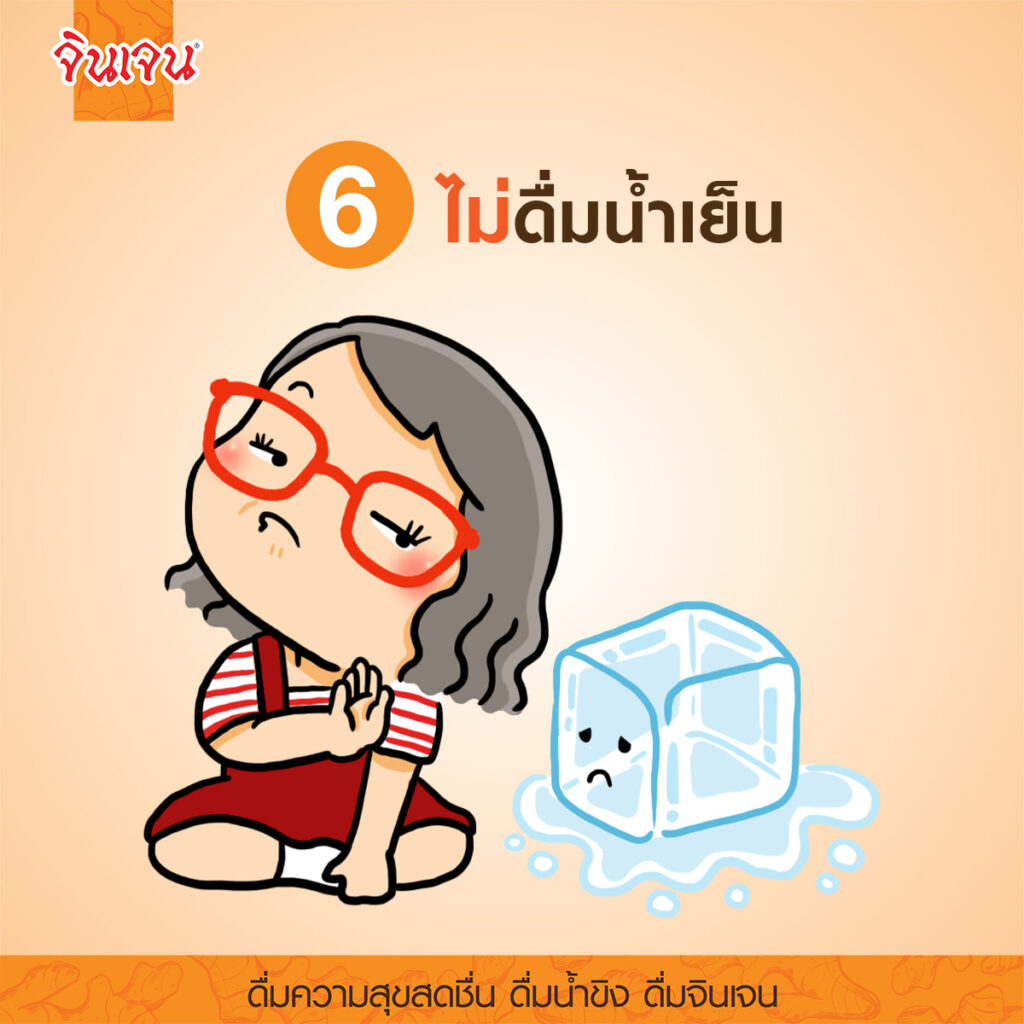 6. สำหรับคนที่ดื่มน้ำเย็นเป็นประจำเพราะเชื่อว่า “ยิ่งดื่มมากก็ยิ่งช่วยให้เผาผลาญดีขึ้น” นั้น ควรเลิกพฤติกรรมนี้เสีย แล้วเปลี่ยนมาดื่มน้ำขิงแทน ถ้าดื่มน้ำขิงให้ร่างกายอบอุ่นอยู่เสมอ ร่างกายก็จะขจัดของเหลงและของเสียออกไปได้ สุขภาพก็จะแข็งแรง